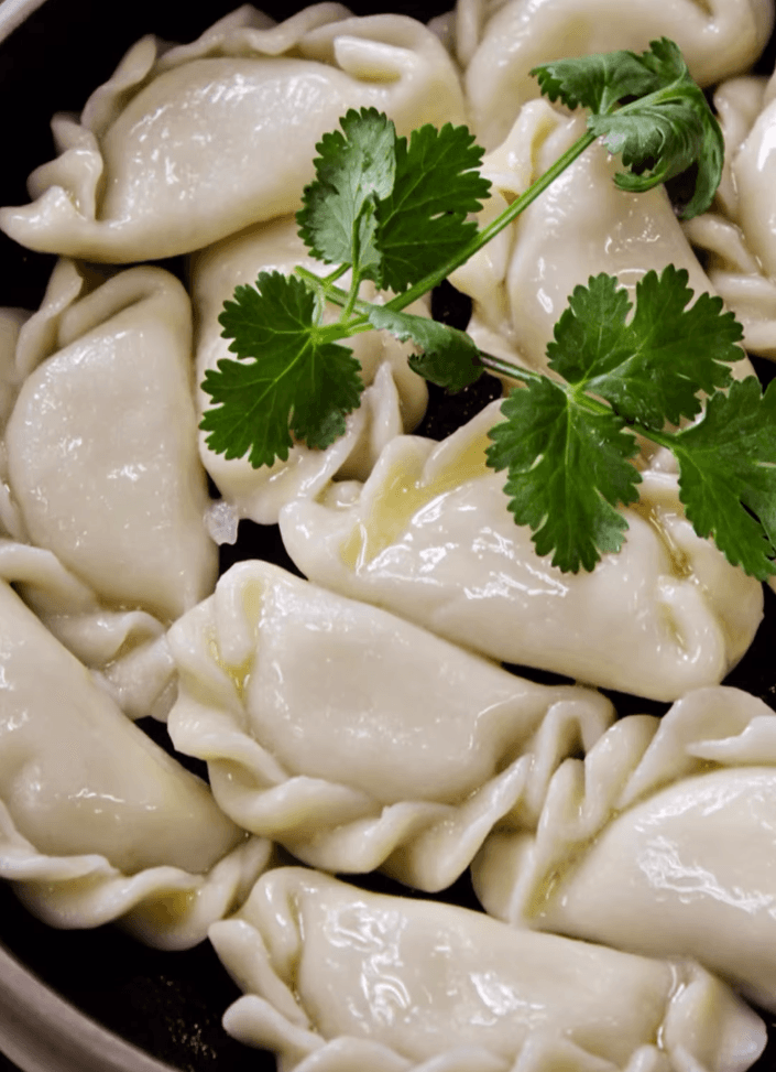 Soft, hand-folded dumplings filled with ingredients like potato, cheese, or seasonal fruits. They’re boiled until tender, served with butter or sour cream, and known for their comforting, homestyle flavor rooted in Slavic cooking.